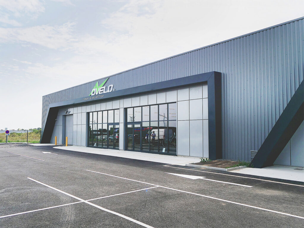 Même dans une zone réservée aux autos, le vélo vient asseoir son nouveau dynamisme ! En phase de conception, l’enjeu principal était de mettre en scène les deux roues à l’intérieur de la cellule commerciale.